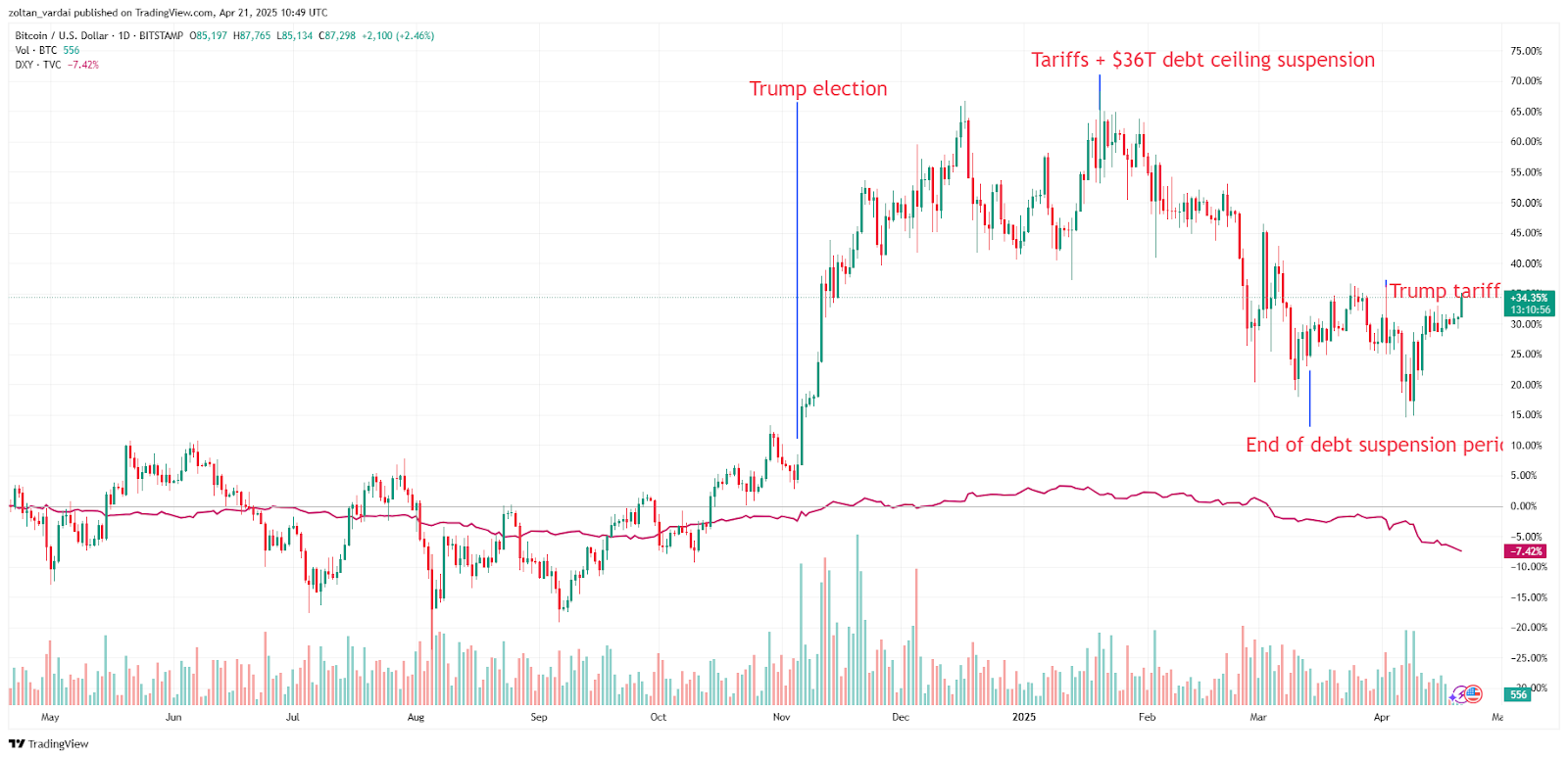 Bitcoin briefly rose above $87,700 for the first time in nearly three weeks, since US President Donald Trump announced reciprocal import tariffs on April 2.