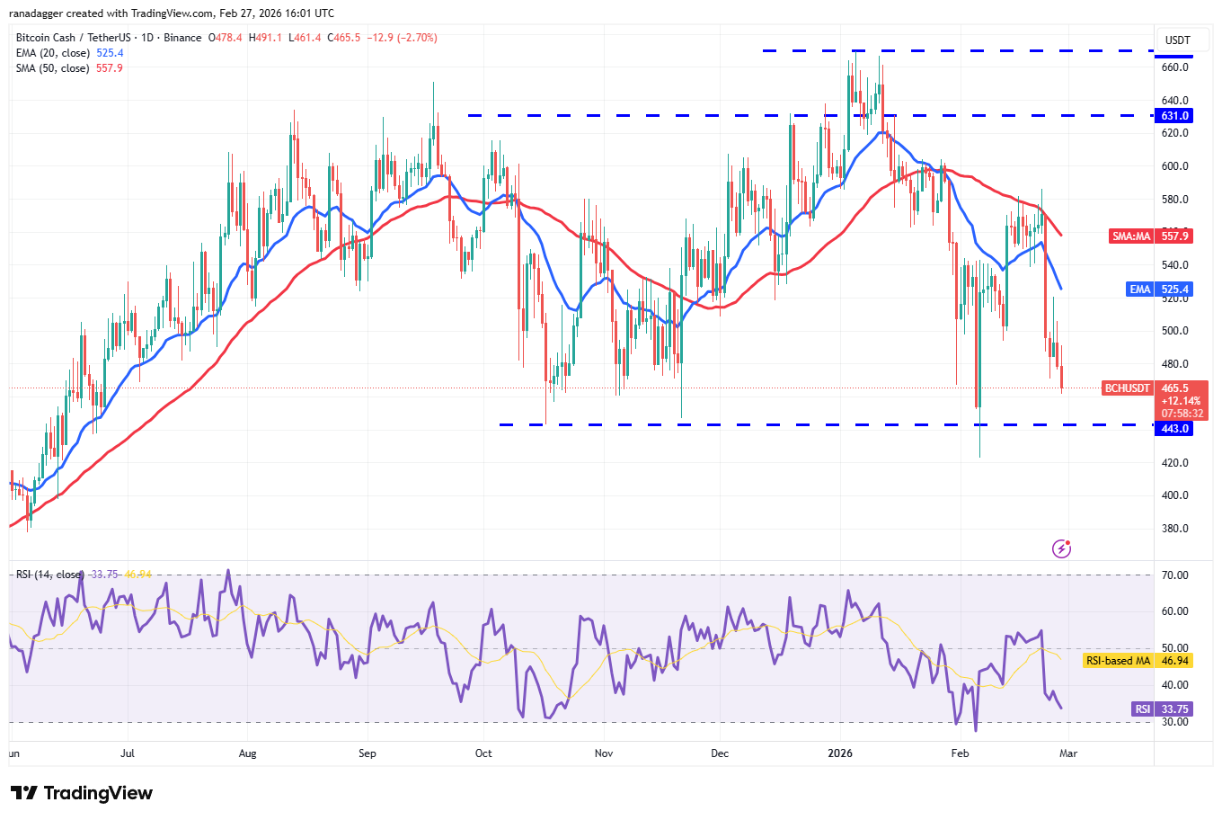 Buyers pushed Bitcoin Cash (BCH) above the $500 level on Wednesday and Thursday, but the long wick on the candlesticks shows selling at higher levels.
