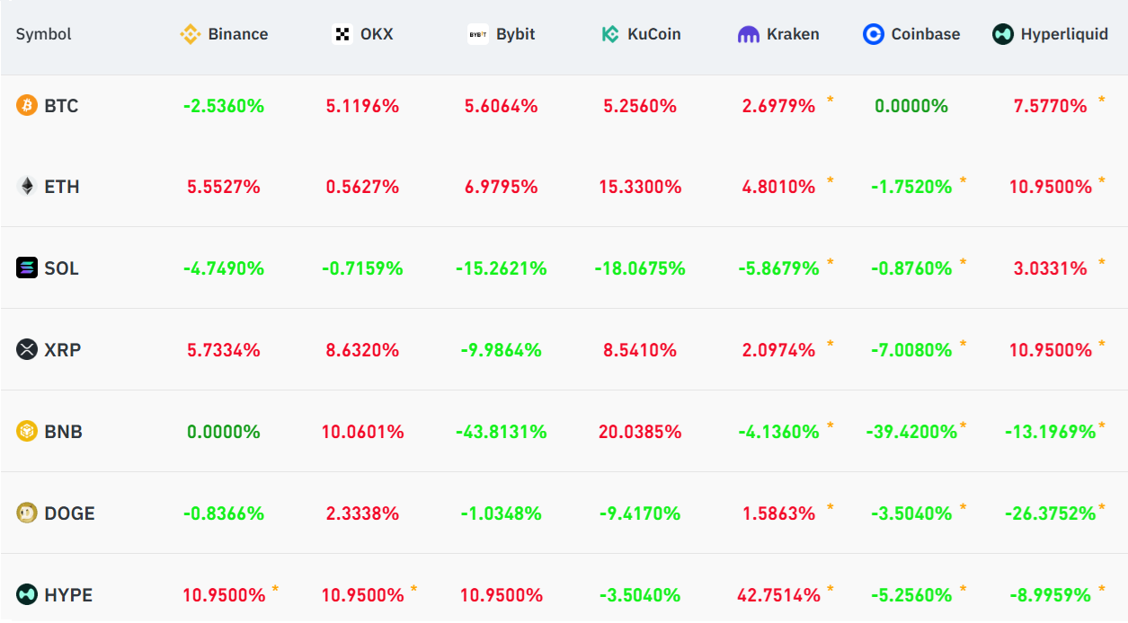 The Bitcoin perpetual futures funding rate at Binance remains negative, meaning shorts (bearish positions) pay for leverage. Meanwhile, the indicator has returned to a normal positive range on other exchanges, creating potential arbitrage opportunities on rates.