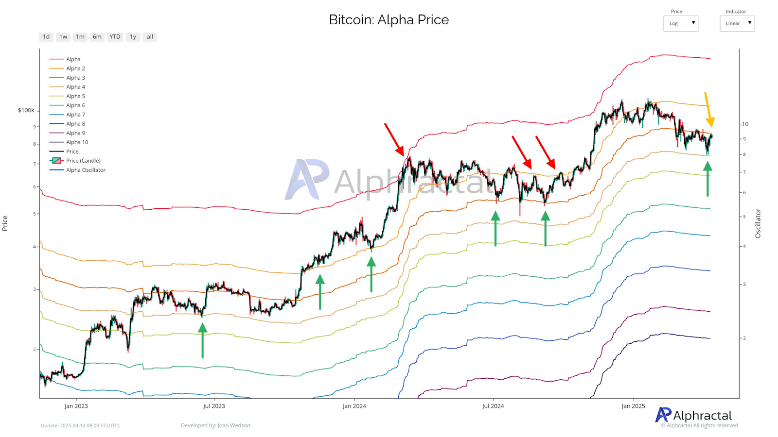 Alphractal adds another layer of insight through its Alpha Price Chart, which incorporates realized cap, average cap, and onchain sentiment — and comes to the same conclusion. According to the chart, BTC must decisively break above $86,300 to restore short-term bullish sentiment. If the price weakens again, support levels lie at $73,900 and $64,700.