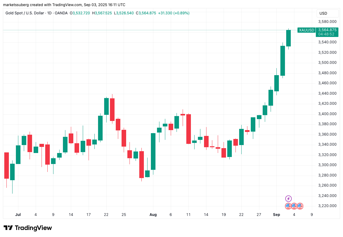 Gold made fresh all-time highs on Wednesday, hitting $3,567 per ounce.