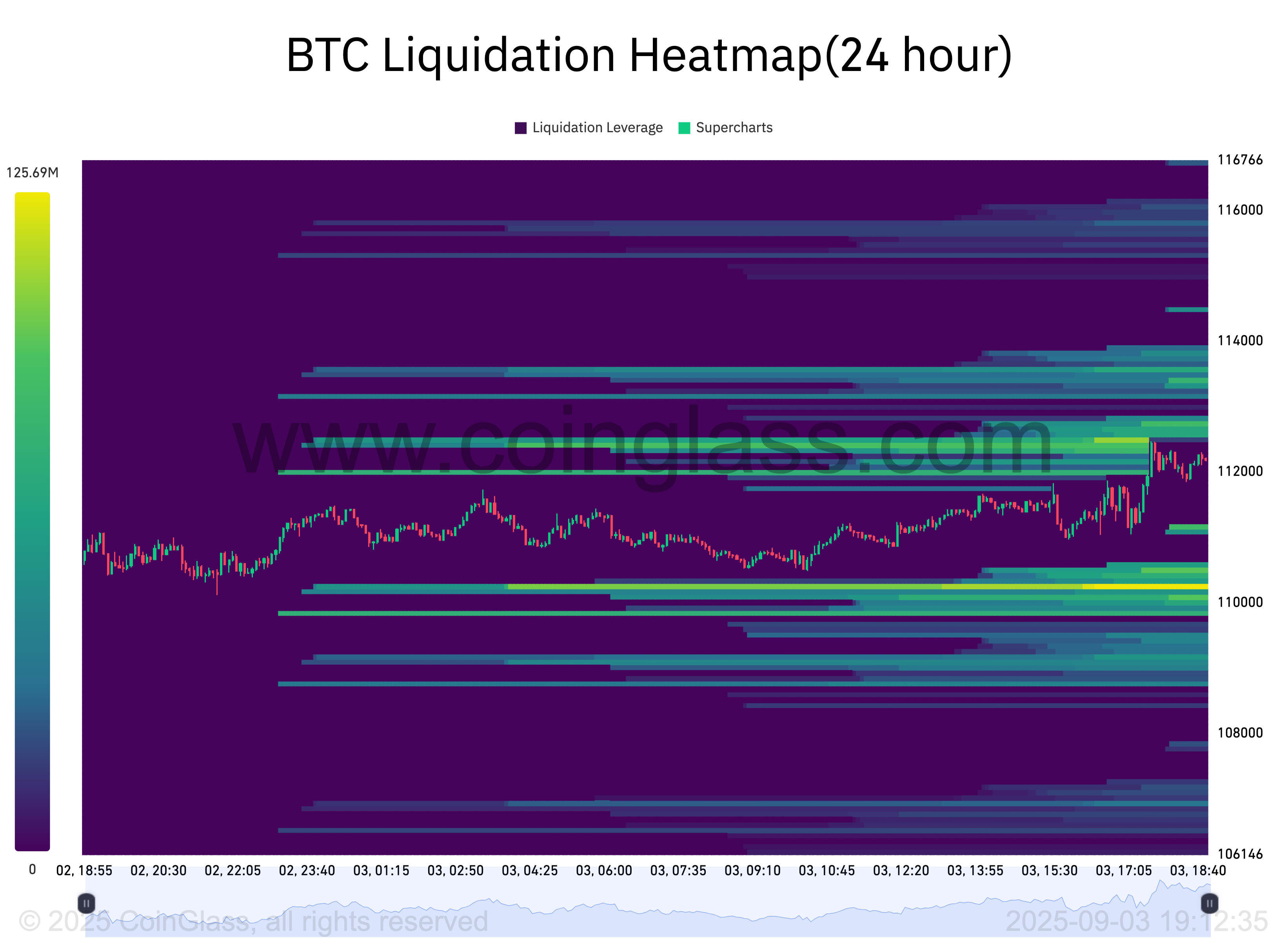 Data from CoinGlass showed price taking out a chunk of that liquidity on the day, with the remainder extending to $114,000.
