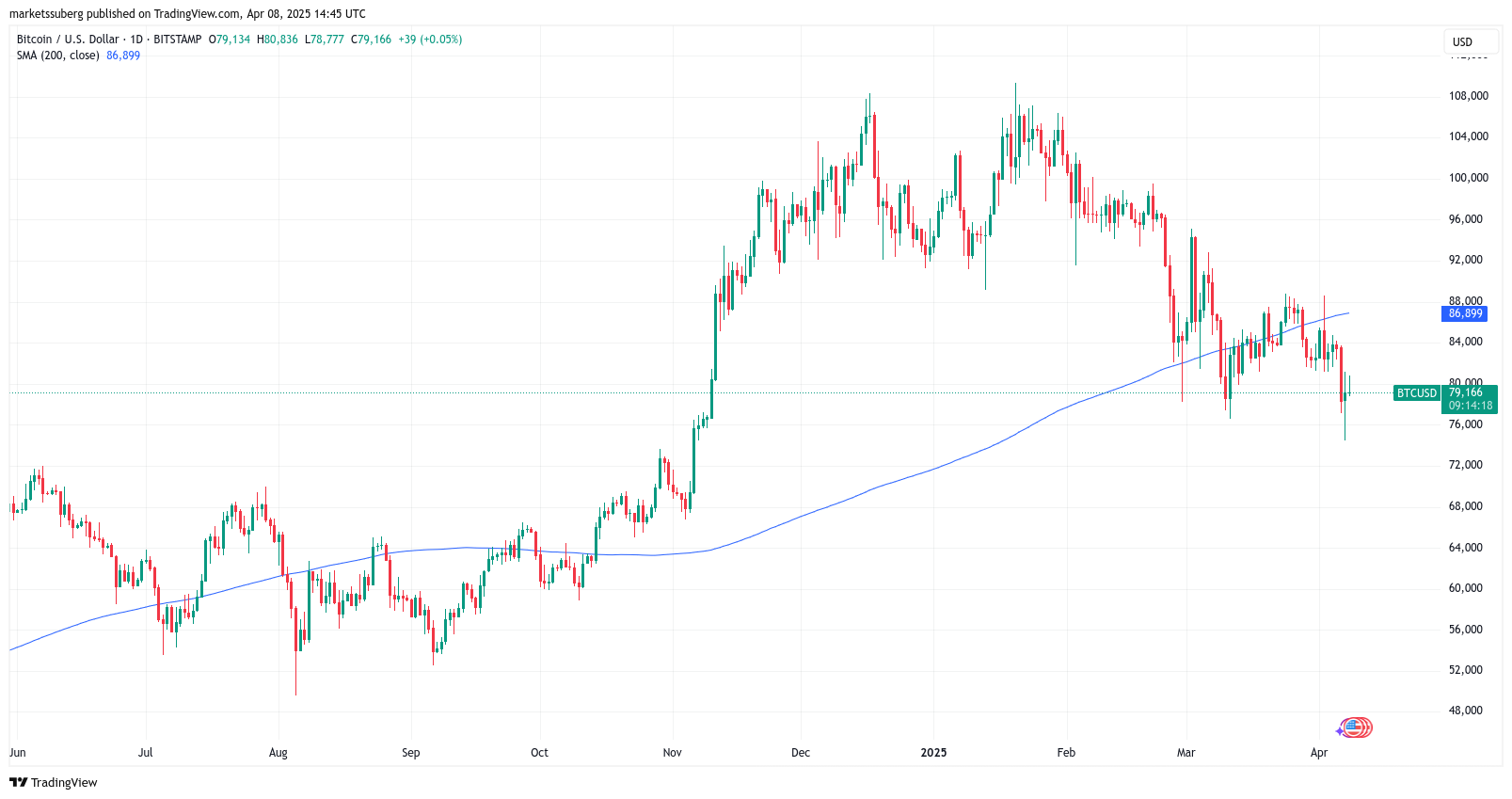 Bitcoin (BTC) danced around $80,000 at the April 8 Wall Street open as US stock markets staged a fresh recovery, but unresolved tensions between China and the US continue to put a damper on BTC’s upside.