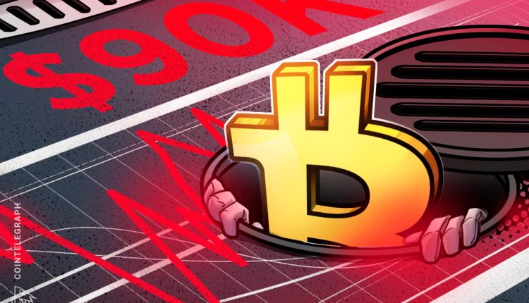 Data from Cointelegraph Markets Pro and TradingView showed BTC/USD dropping below $90,000, shedding up to 5% on the day.