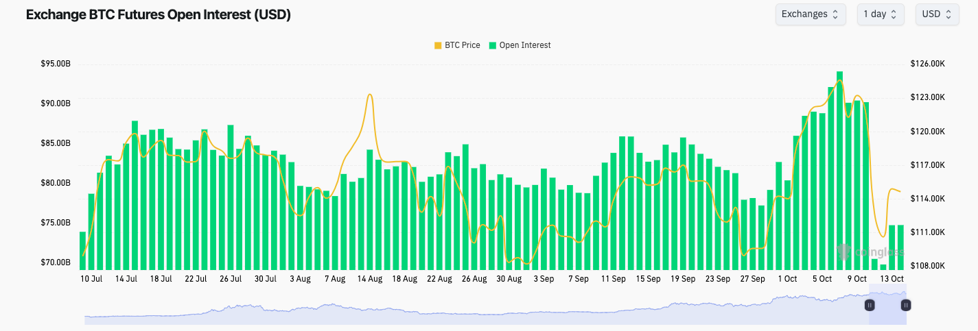 Open interest (OI) tells a similar story. Between Friday and Sunday, over $20 billion in assets disappeared from exchanges, according to data from CoinGlass, before rebounding from $69 billion to $74 billion.