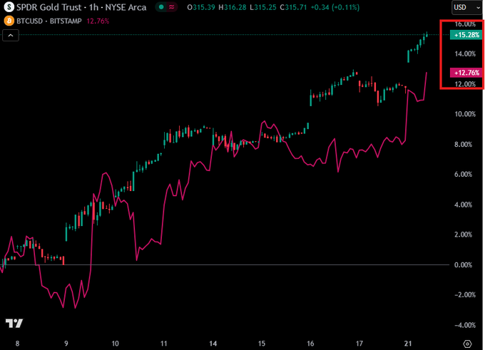 Bitcoin is struggling again as gold retakes the limelight with week-to-date gains of nearly 5%.