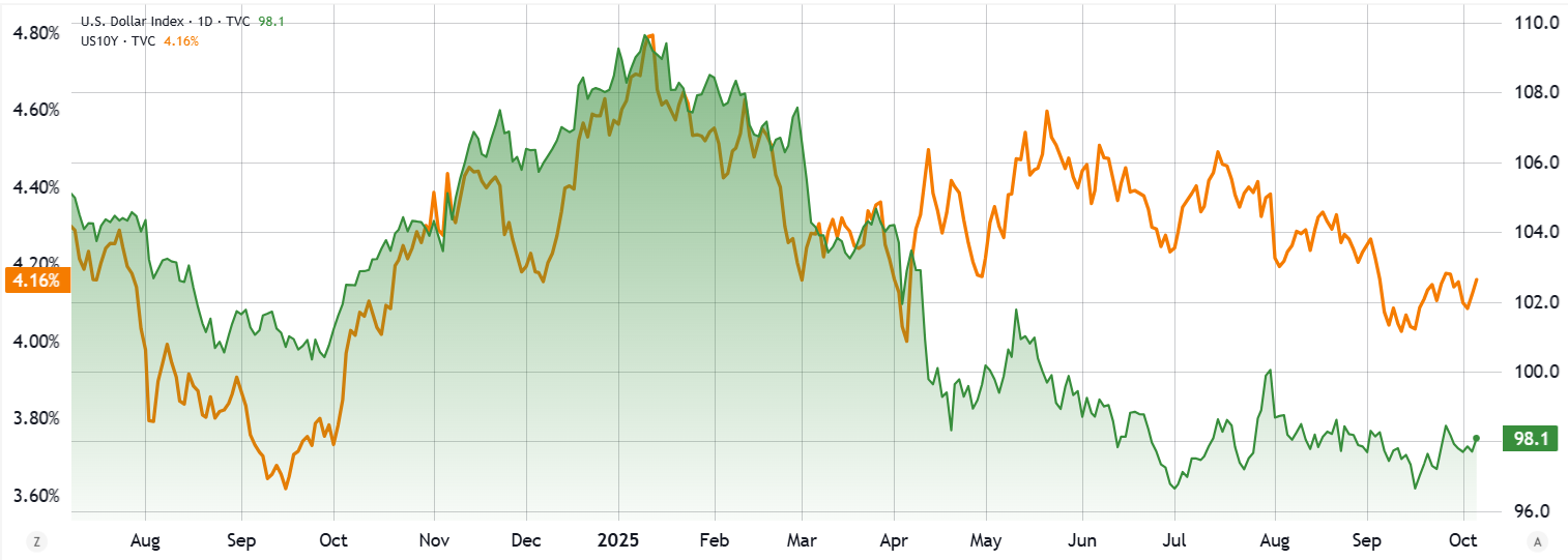The interest in the US debt is projected to exceed $1 trillion in 12 months for the first time in history, causing analysts to expect a 127% debt-to-GDP ratio for 2026. Such fiscal stress raises doubts about confidence in the US’s ability to repay its debt as investors worry that the government will need to inflate, or otherwise devalue the currency.