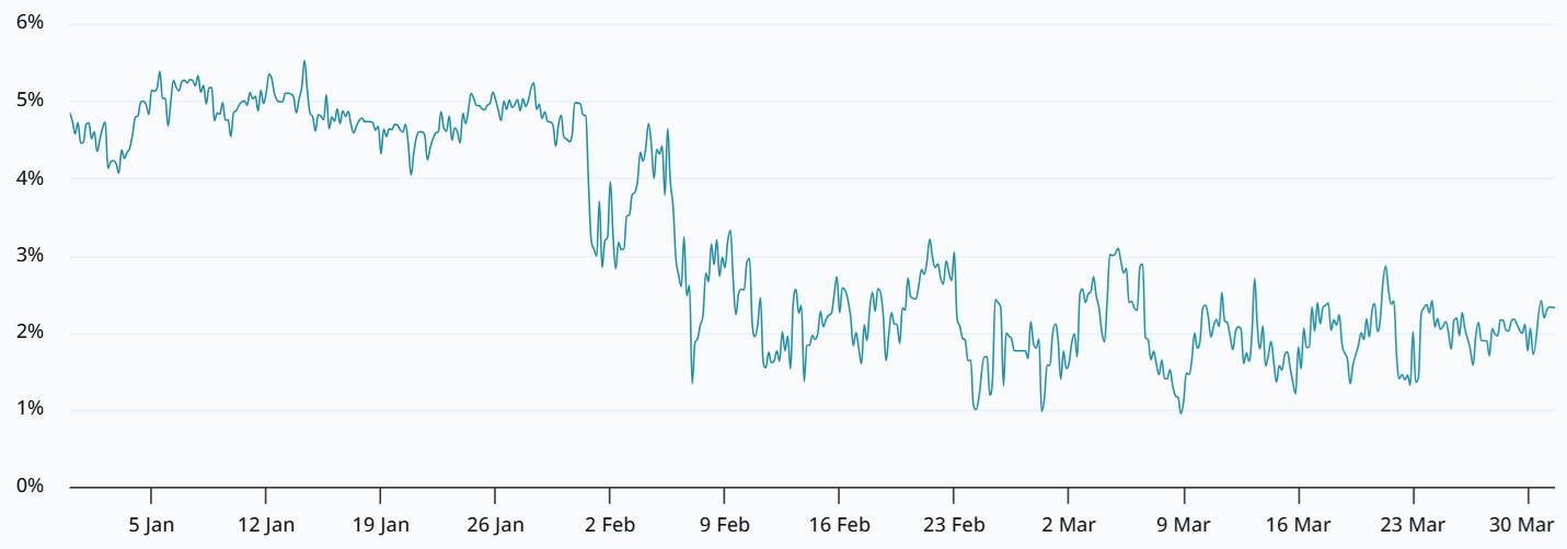 The Bitcoin monthly futures contracts annualized premium relative to regular spot markets stood at 2% on Tuesday, flat from the prior week. Numbers below 4% indicate a lack of demand for bullish leverage as shorts (sellers) typically demand a premium to compensate for the longer settlement period. More importantly, not even the price rally above $71,000 on Wednesday was able to make investors feel bullish.