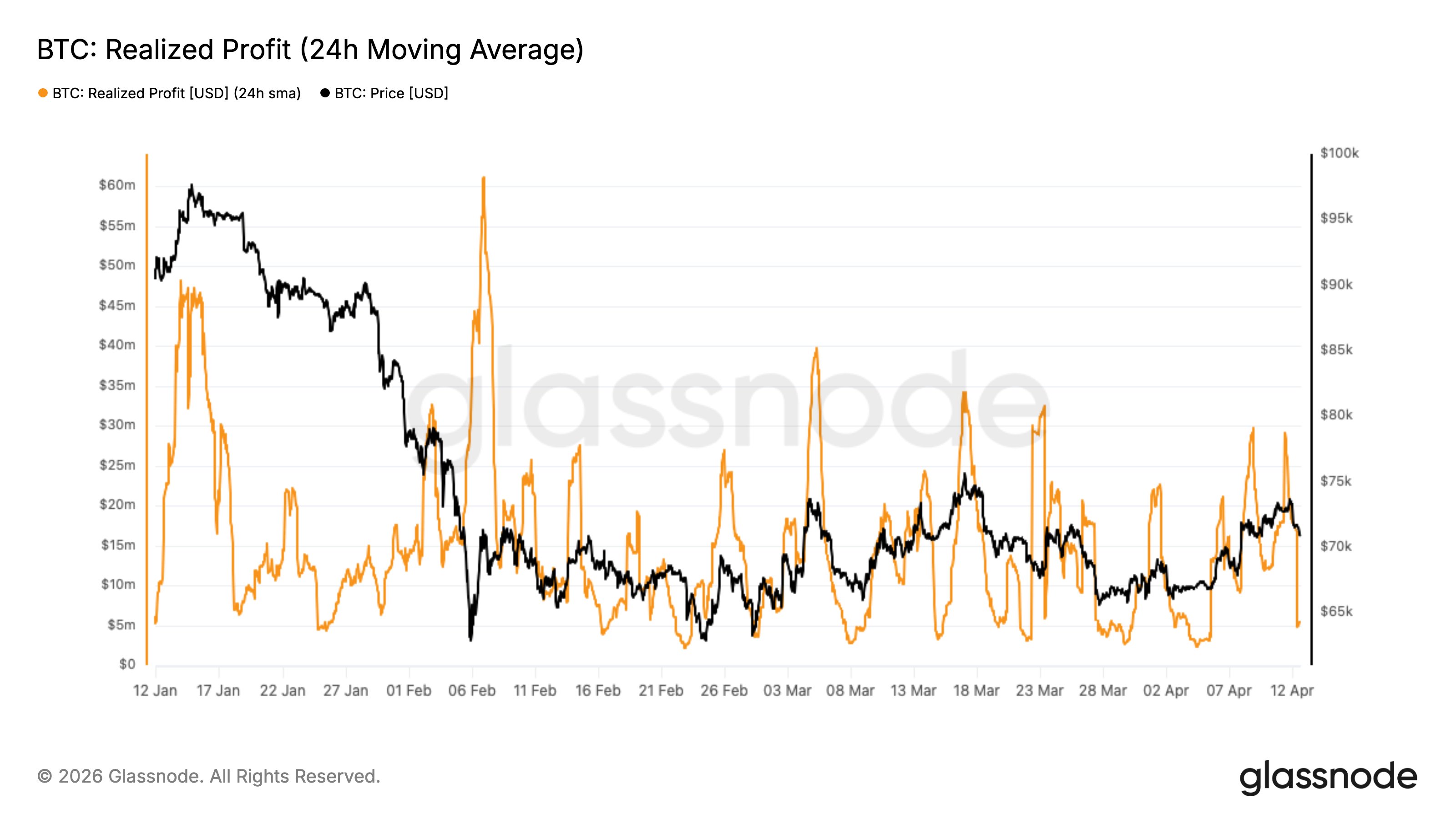 “As price probed the $70K region, Realized Profit/hour spiked above $20M, signalling a local exhaustion,” Glassnode wrote at the time.
