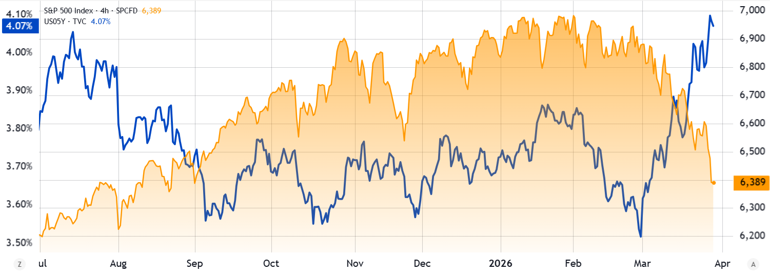 Rising oil prices and a potential $200 billion in extra US military spending led investors to demand higher returns on government bonds and dragged the S&P 500 to its lowest levels since September 2025. West Texas Intermediate (WTI) oil surged to $100 on Friday, while 5-year Treasury yields reached 4.07%, up from 3.72% three weeks prior.