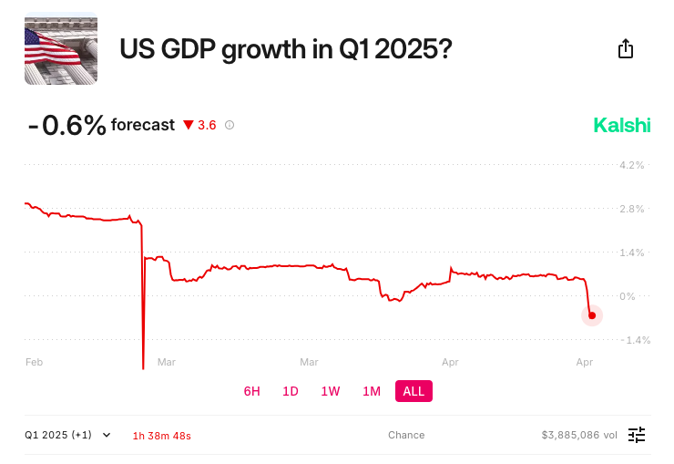 “All signs point to the first quarter of US GDP contraction since Q2 2022,” it wrote in an X post alongside data from prediction service Kalshi.