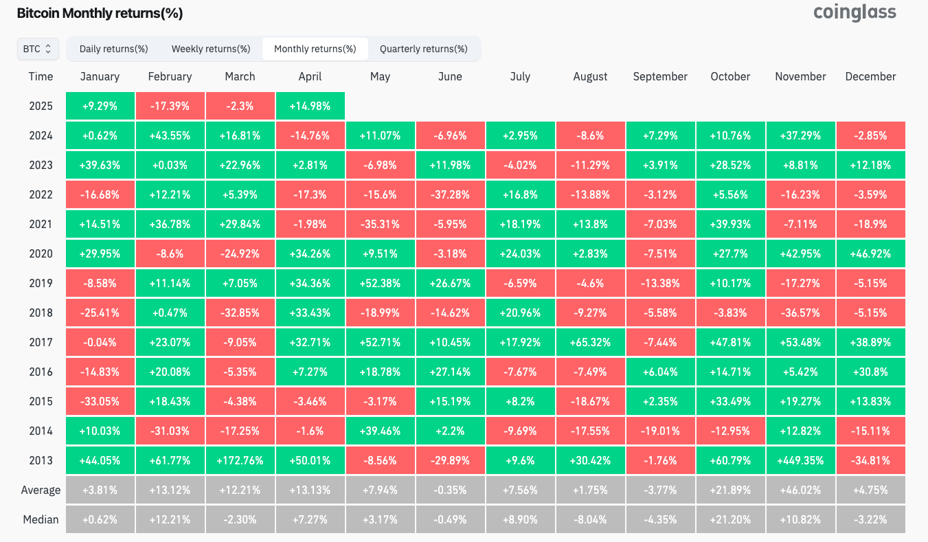 Data from monitoring resource CoinGlass showed the pair up 15% month-to-date, the best April gains since 2020.