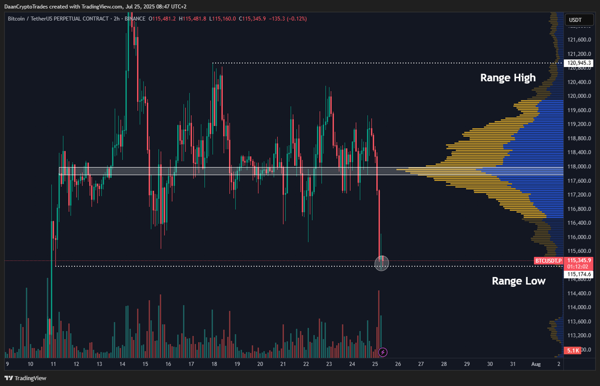 Popular analyst Daan Crypto Trades said that the $115,000 range low needed to hold to secure the uptrend.