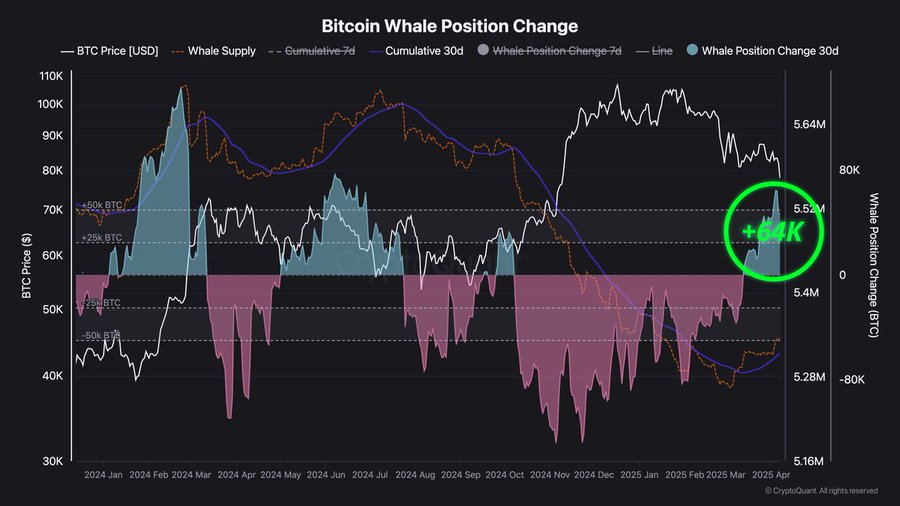 The number of addresses holding more than a thousand Bitcoin has surged in April as whales continue to accumulate.