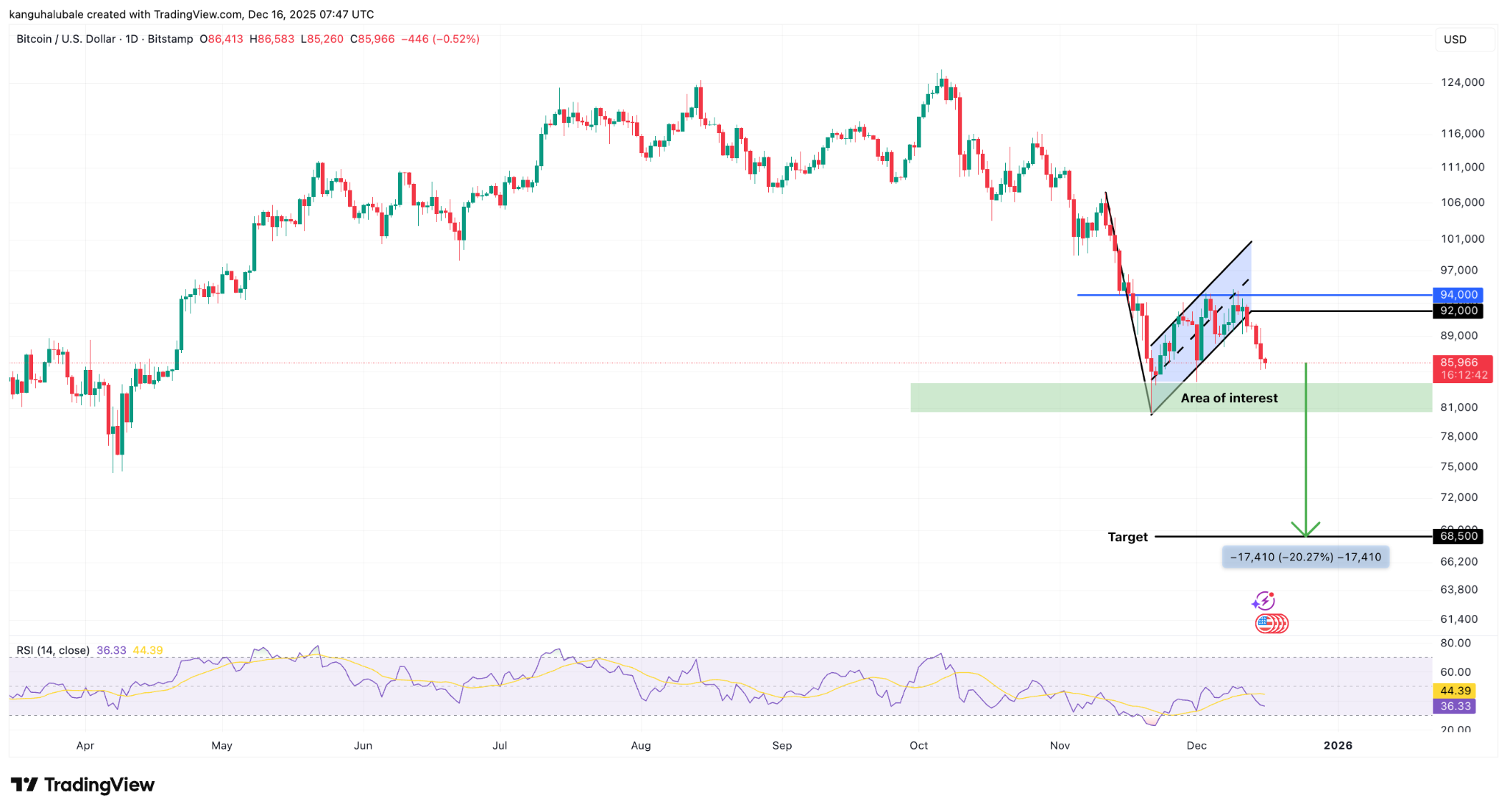 The first area of interest now lies between the $83,800 local low (reached on Dec. 1) and the multimonth low of $80,500, reached on Nov. 21.