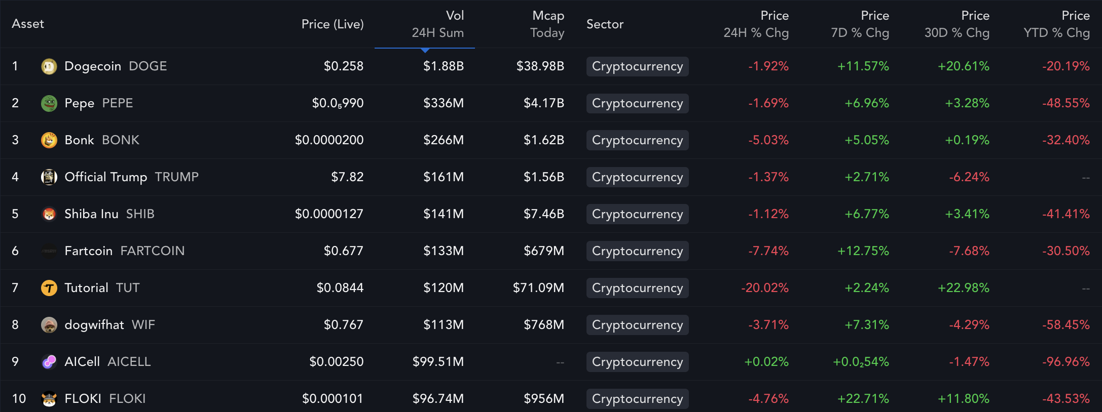 That includes the memecoin leader Dogecoin (DOGE), whose valuation has slipped 20.20% year-to-date, as well as Shiba Inu (SHIB) and Pepe (PEPE), which have plunged 41.41% and 48.55%, respectively, in the same period.