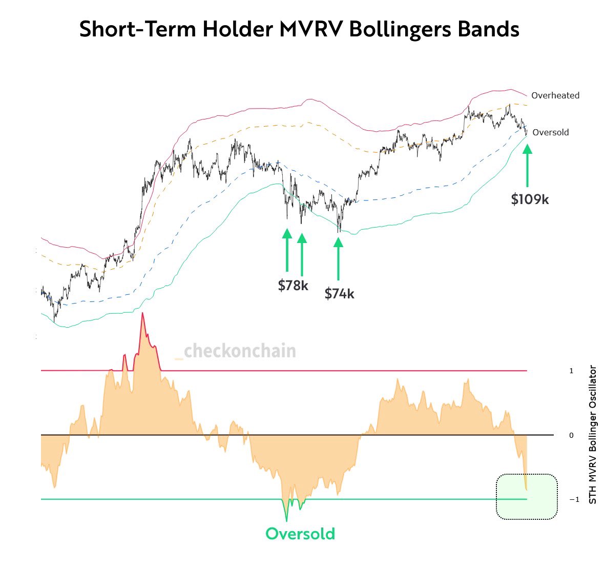 Bitcoin STH MVRV Bollinger Bands. Source: Checkonchain