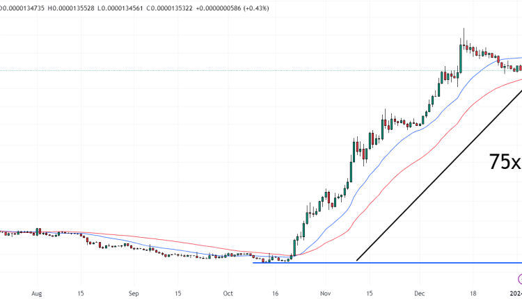 $BONK has pulled back more than 60% from its mid-December 2023 highs above $0.000035, though remains around 75x higher versus its October lows under $0.0000002.