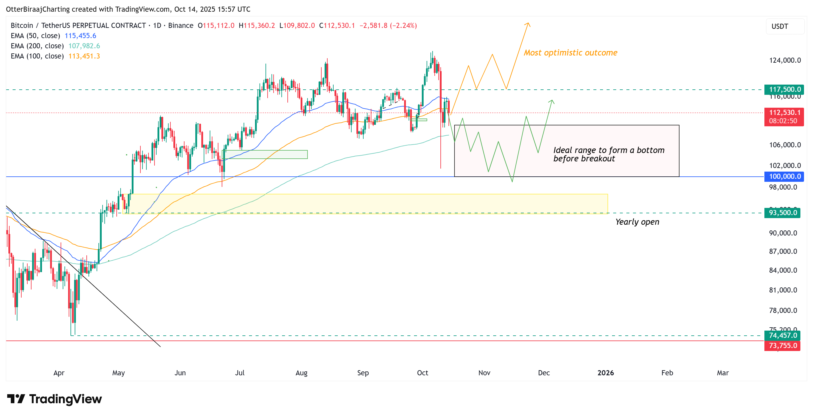 However, Bitcoin is likely to trade sideways from $110,000 to $100,000 as it attempts to form a new bottom. The recent low around $101,500, recorded on Oct. 10, may still be tested again before a more convincing range bottom emerges above the $100,000 level.
