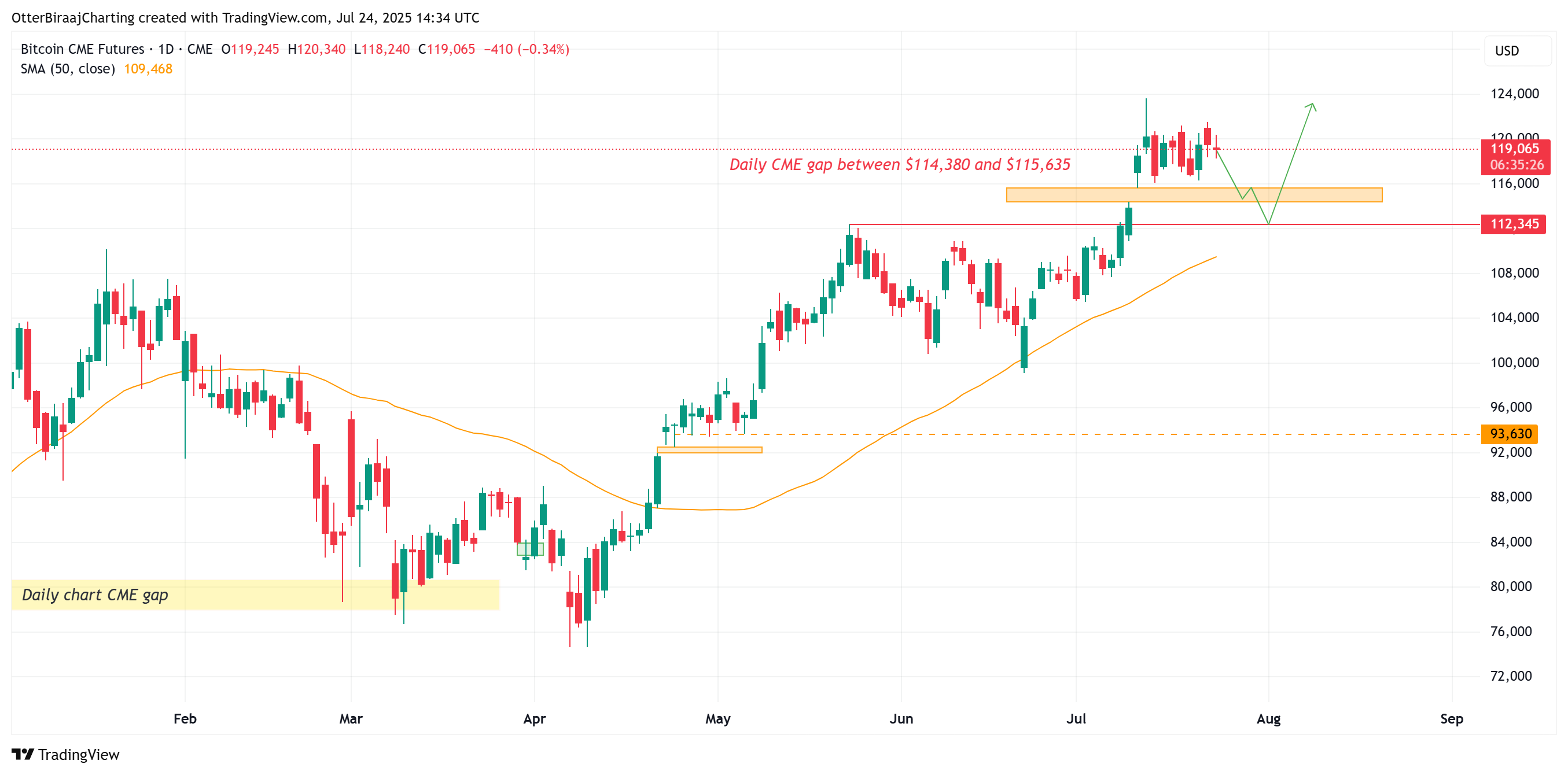 A CME gap between $114,000–$115,000 could act as a magnet.