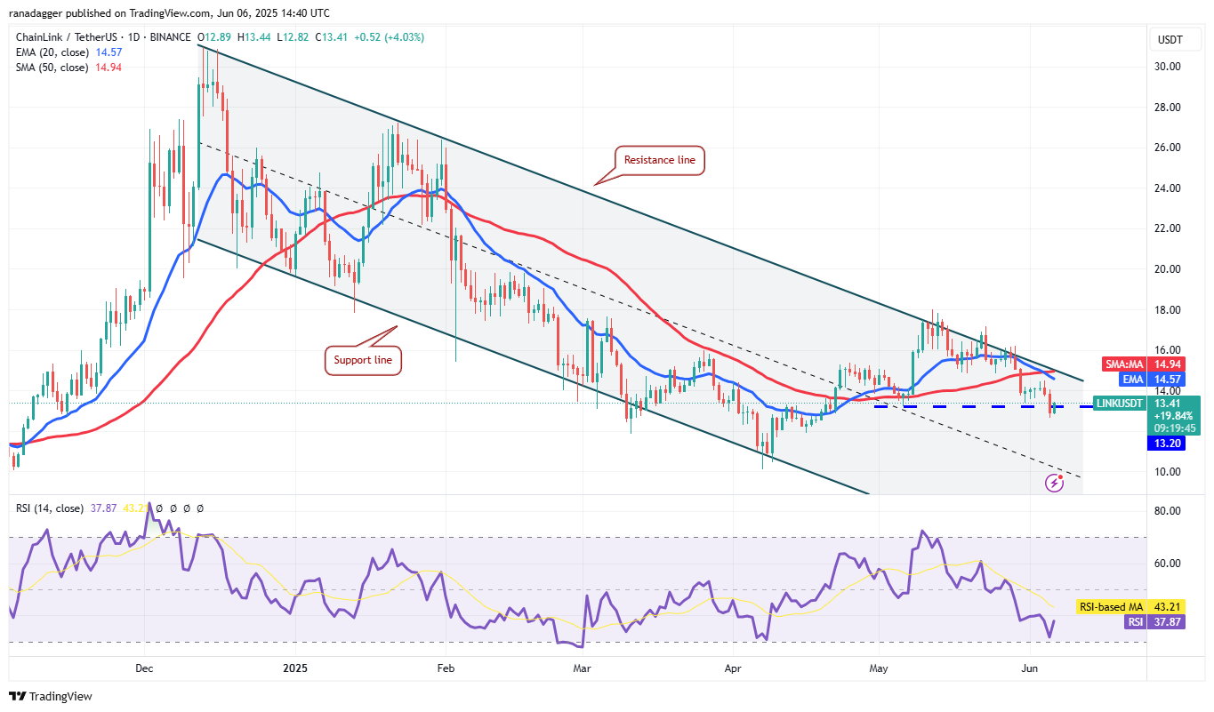 Chainlink (LINK) fell below the $13.20 level on June 5, suggesting that the price may remain inside the descending channel pattern for a few days.