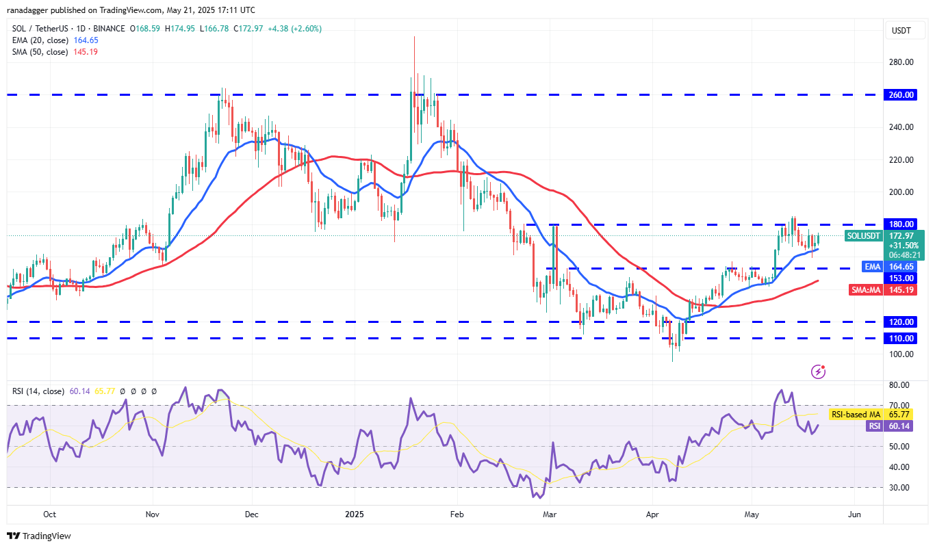 Sellers failed to pull Solana (SOL) below the 20-day EMA ($164), indicating demand at lower levels.