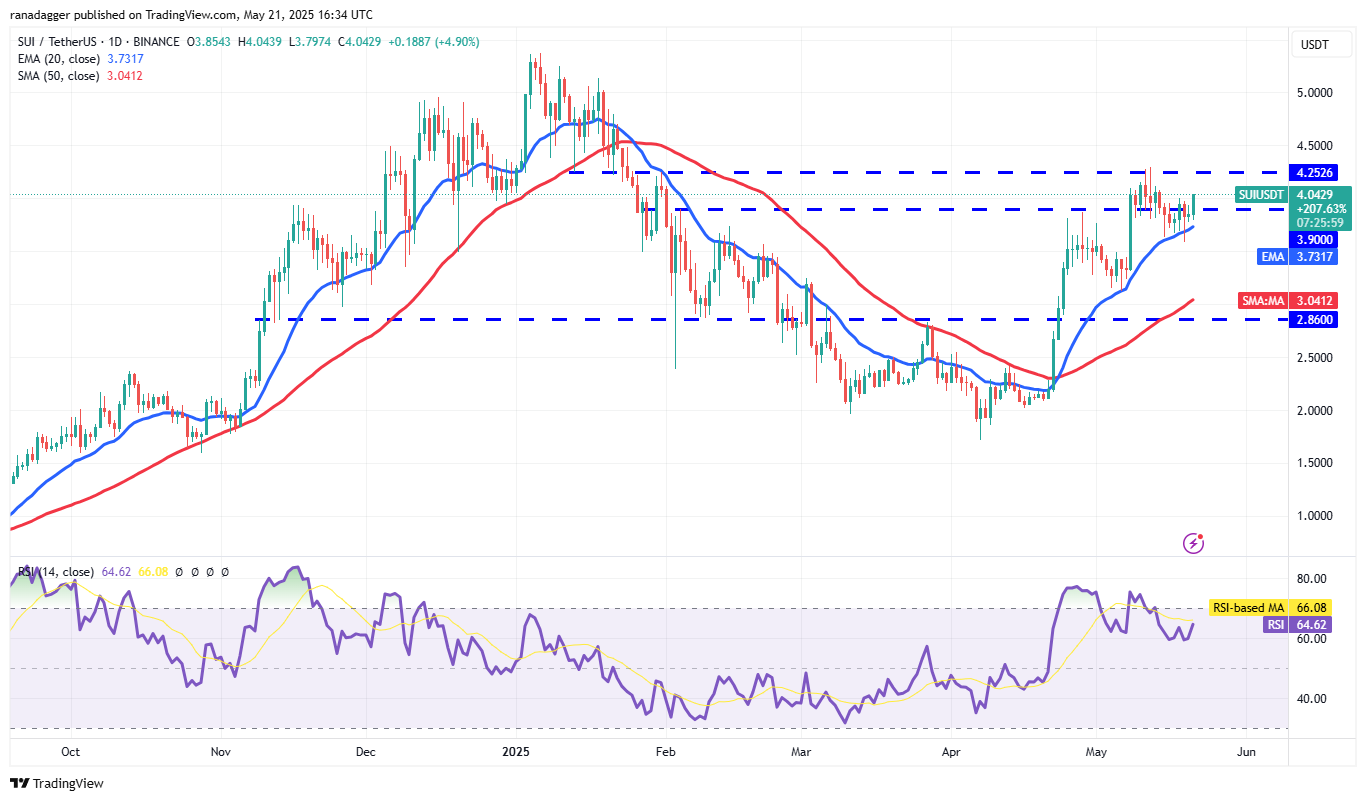 Sui’s (SUI) pullback has taken support at the 20-day EMA ($3.73), indicating a positive sentiment.