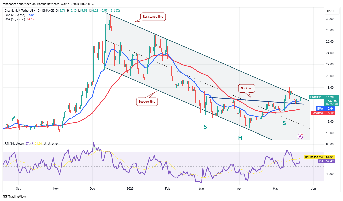 Buyers successfully defended the neckline of the inverse H&S pattern in Chainlink (LINK), indicating buying on dips.