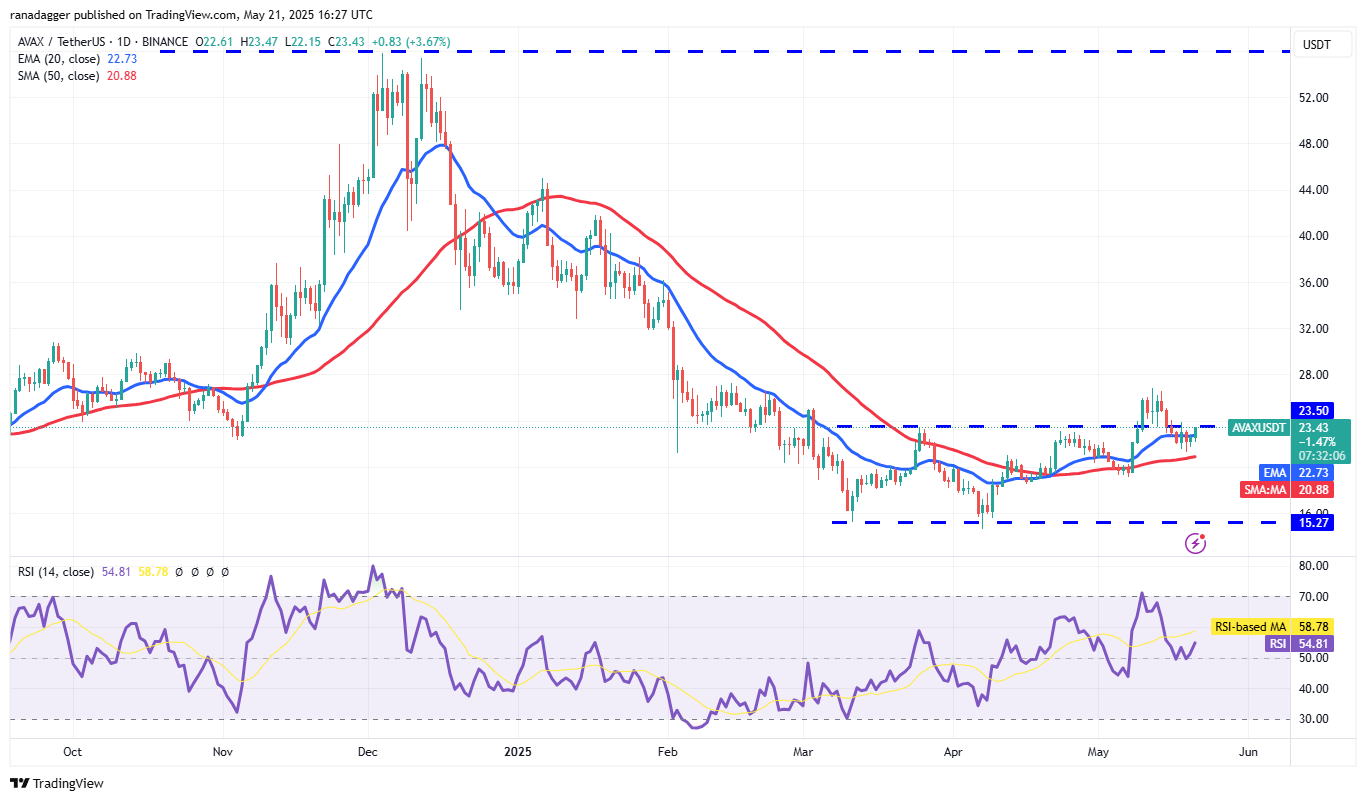 Avalanche (AVAX) took support at the 50-day SMA ($20.88), signaling that the bulls are trying to form a higher low.