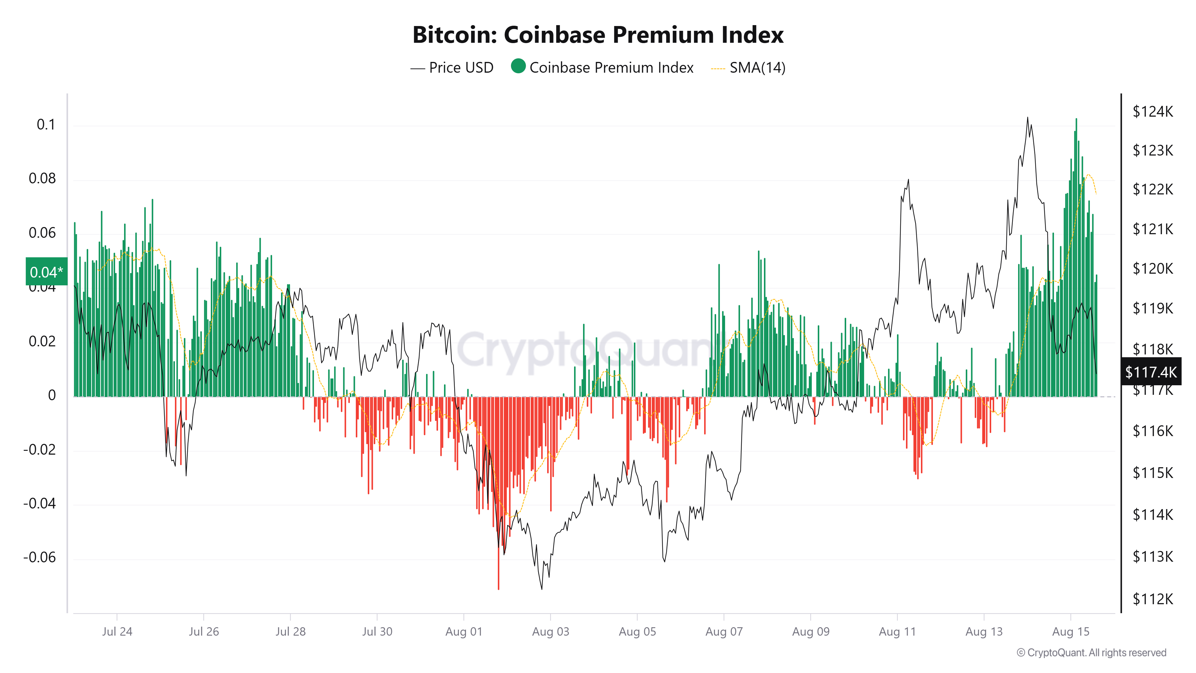 Coinbase Premium Index one-hour resolution. Source: CryptoQuant