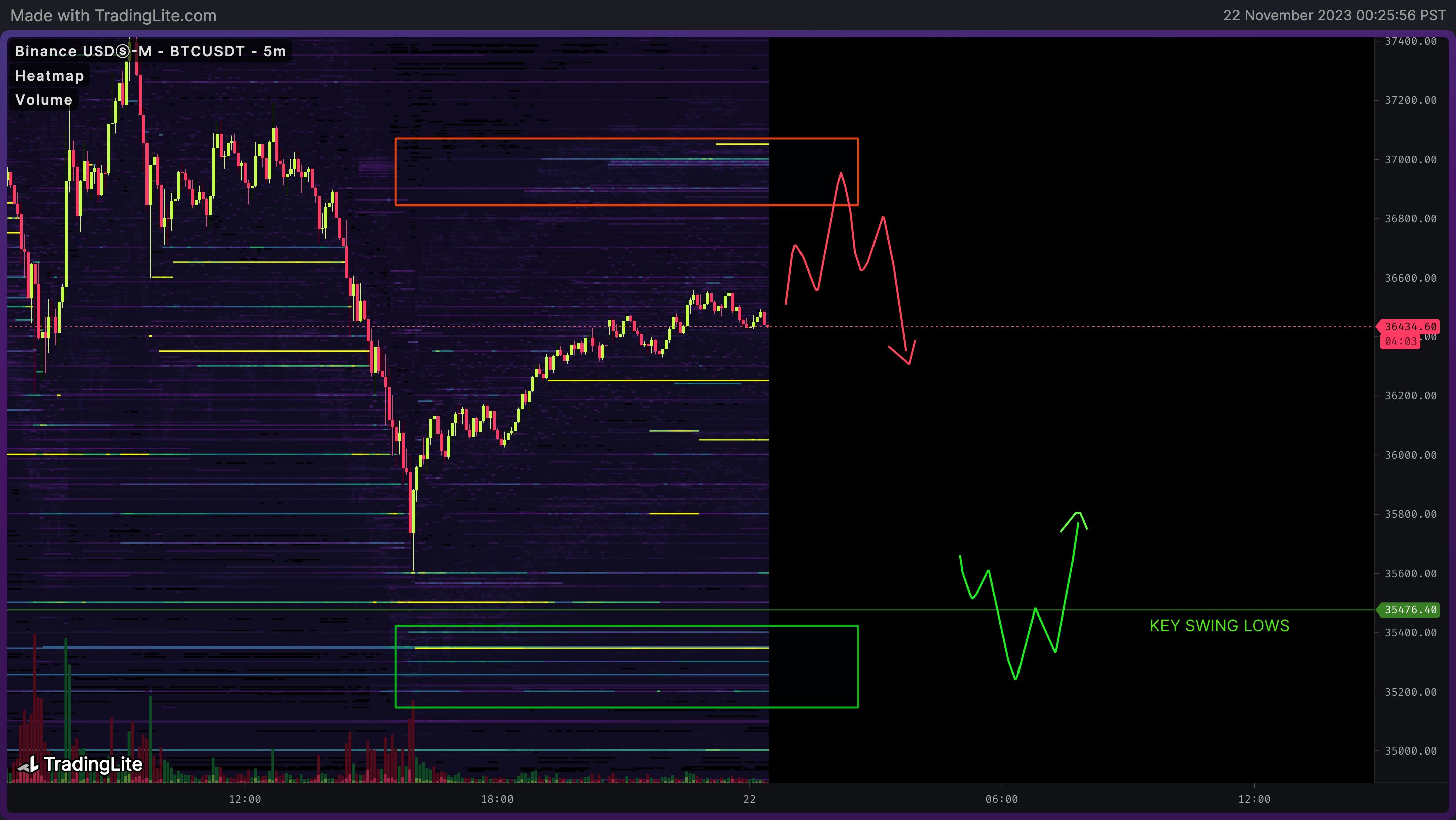 “As per my chart in the quoted tweet looking for the lows at 35.5k to get taken before the conclusion of this accumulation phase and the start of the next impulse.”