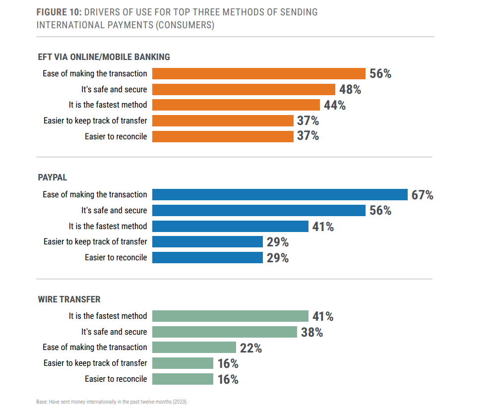 Ease of use and security were top priorities for international payment users. Source: Payments Canada