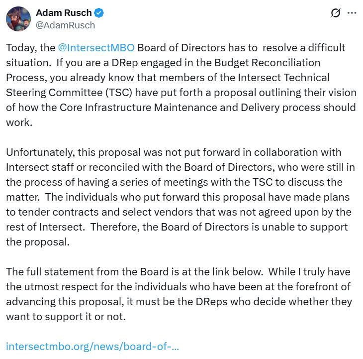 Adam Rusch, a member of Intersect’s board of directors, said in an April 28 post to X that the community should decide which proposal to support.