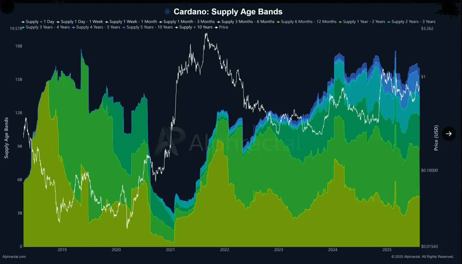 As of Tuesday, 15 billion ADA remains unmoved for more than a year, hinting at reduced selling pressure amid the so-called “altcoin season” buzz.