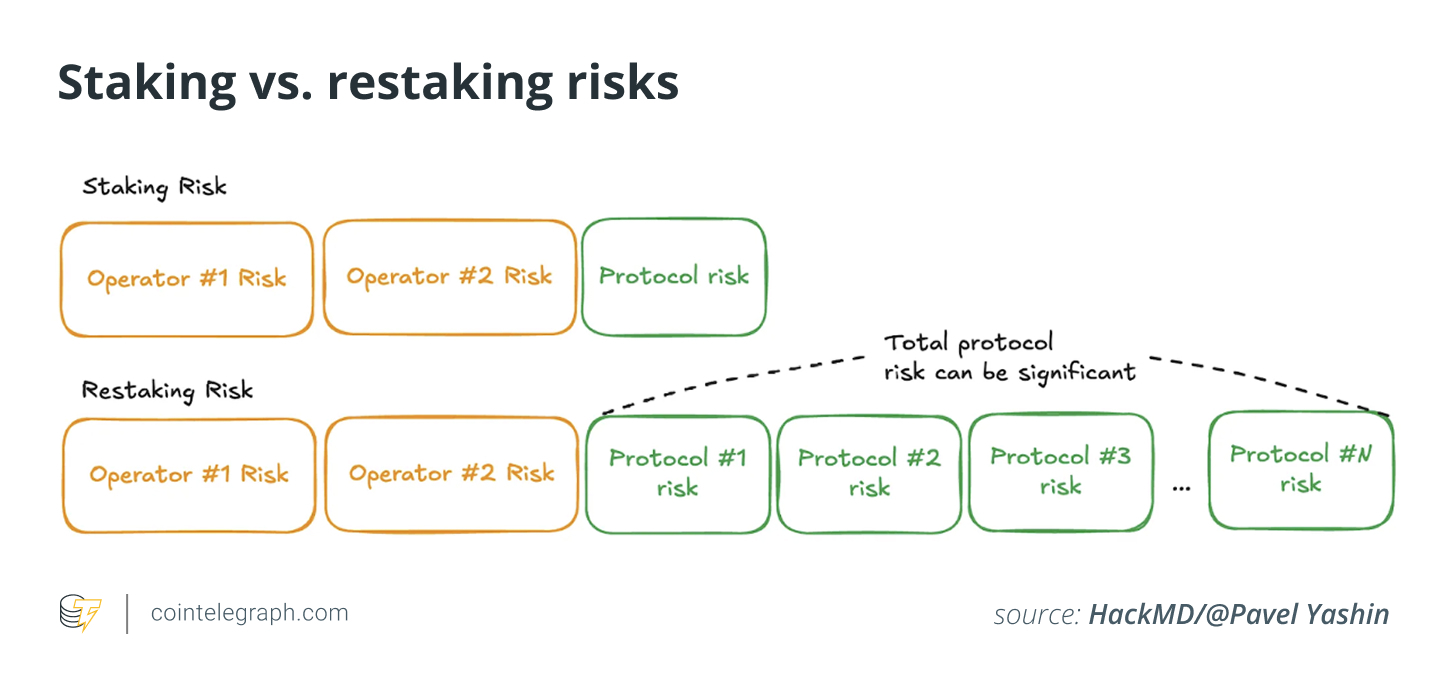 Slashing is designed to deter valid economic attacks in proof-of-stake networks. It occurs when a validator or operator violates the rules, whether through a deliberate attack or an unintentional failure. In restaking, slashing is an even more significant risk than in traditional staking, because the stake can be delegated to multiple networks simultaneously. Each AVS brings its own set of technical, economic and slashing risks, and even small risks from individual protocols can compound across the portfolio.