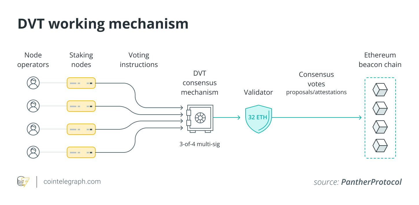 One of the recent developments in restaking, the Distributed Validator Technology (DVT), offers another compelling way for institutional application of restaking. DVT is an approach to validator security in which key management and signing responsibilities are spread across multiple parties. This allows a single validator to operate across multiple independent nodes, which reduces the risk of slashing or compromised validator keys. DVT gives institutions direct control over staking and restaking products without intermediaries and eliminates single-point failures through distributed validation.