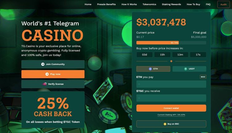 Monday, November 27th, 2023, New York – Telegram-based casino TG.Casino could be the next crypto to explode like Rollbit says a growing roster of analysts and experts after it raised $3 million in presale, with only $2 million left to be snapped up by eager investors.