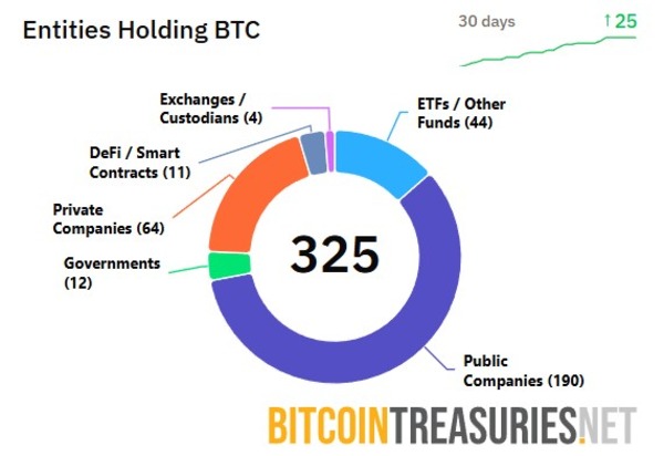 Publicly listed companies now hold over 1 million BTC. Source: BitcoinTreasuries.NET