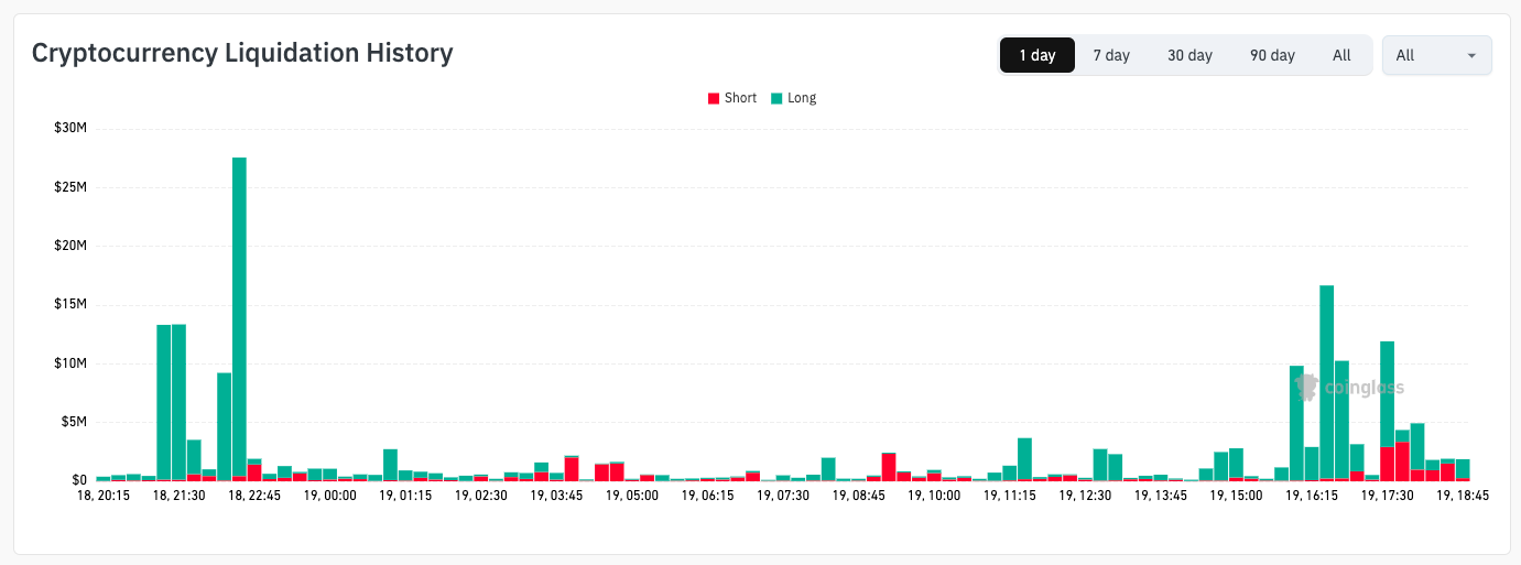 CoinGlass put 24-hour cross-crypto liquidations at $210 million at the time of writing.