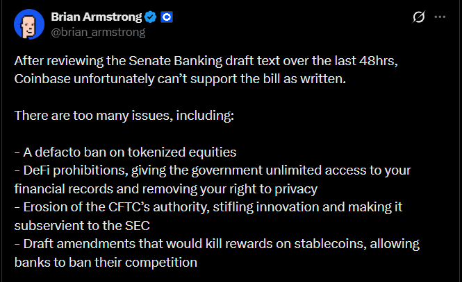 The exchange’s CEO, Brian Armstrong, wrote on X: