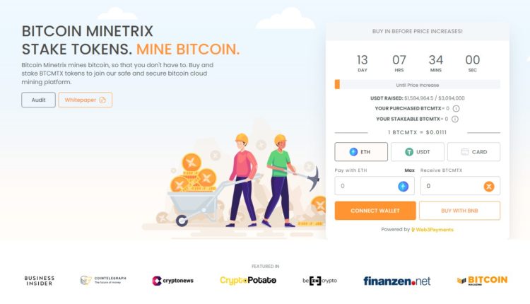 To join the Bitcoin Minetrix presale is simple, all a user needs to do is connect a crypto wallet loaded with either ETH or USDT (users can also just use a bank card!) and select their chosen amount of $BTCMTX to purchase.