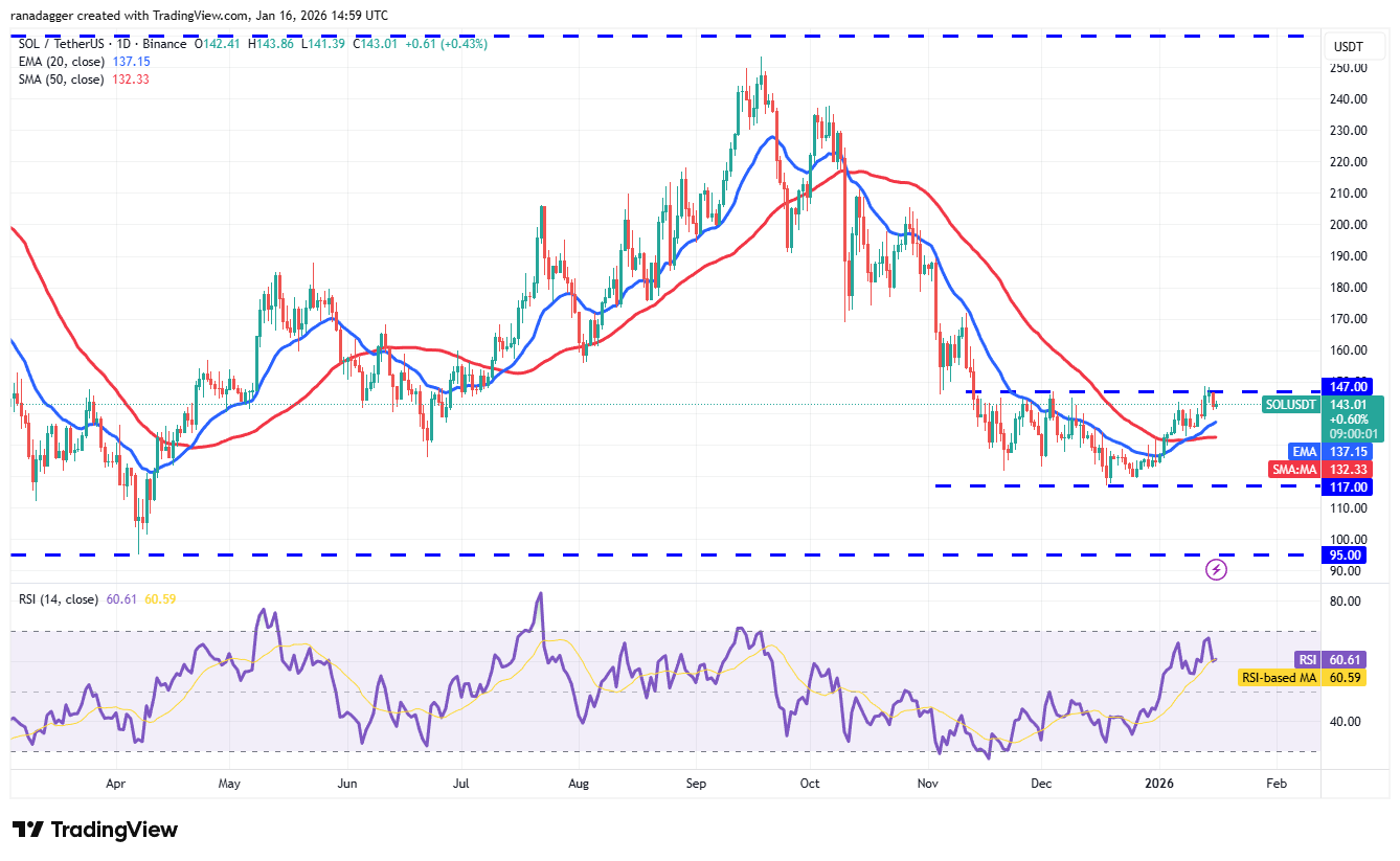 Sellers will have to pull the price below the 50-day SMA ($132) to weaken the bullish momentum. The Solana price may then remain inside the $117 to $147 range for a few more days.