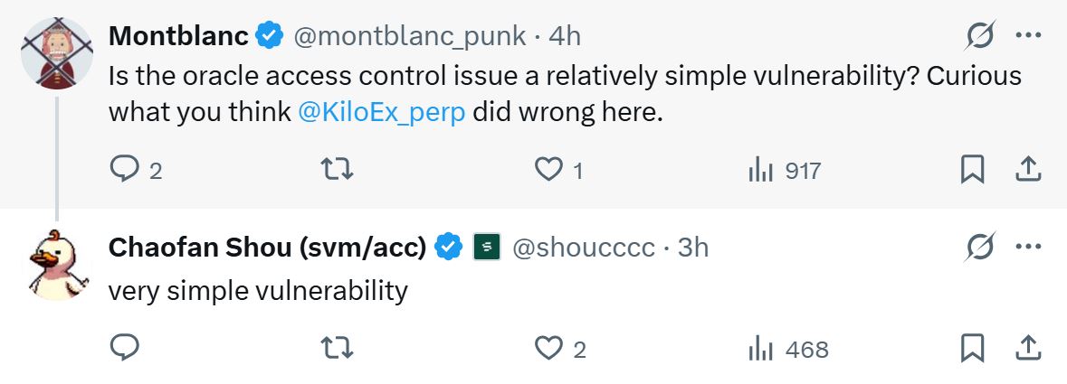 “Anyone can change the Kilo’s price oracle. They did verify that the caller shall be a trusted forwarder, though, but didn’t verify the forwarded caller,” Shou said.