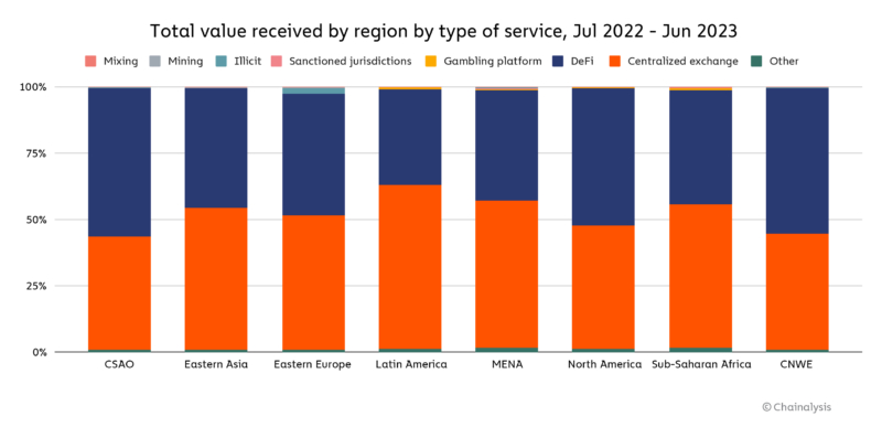 According to the study, the CNWE accounts for 17.6% of global cryptocurrency transactions between July and June 2022 and sits as its second largest region in the same metric behind North America.