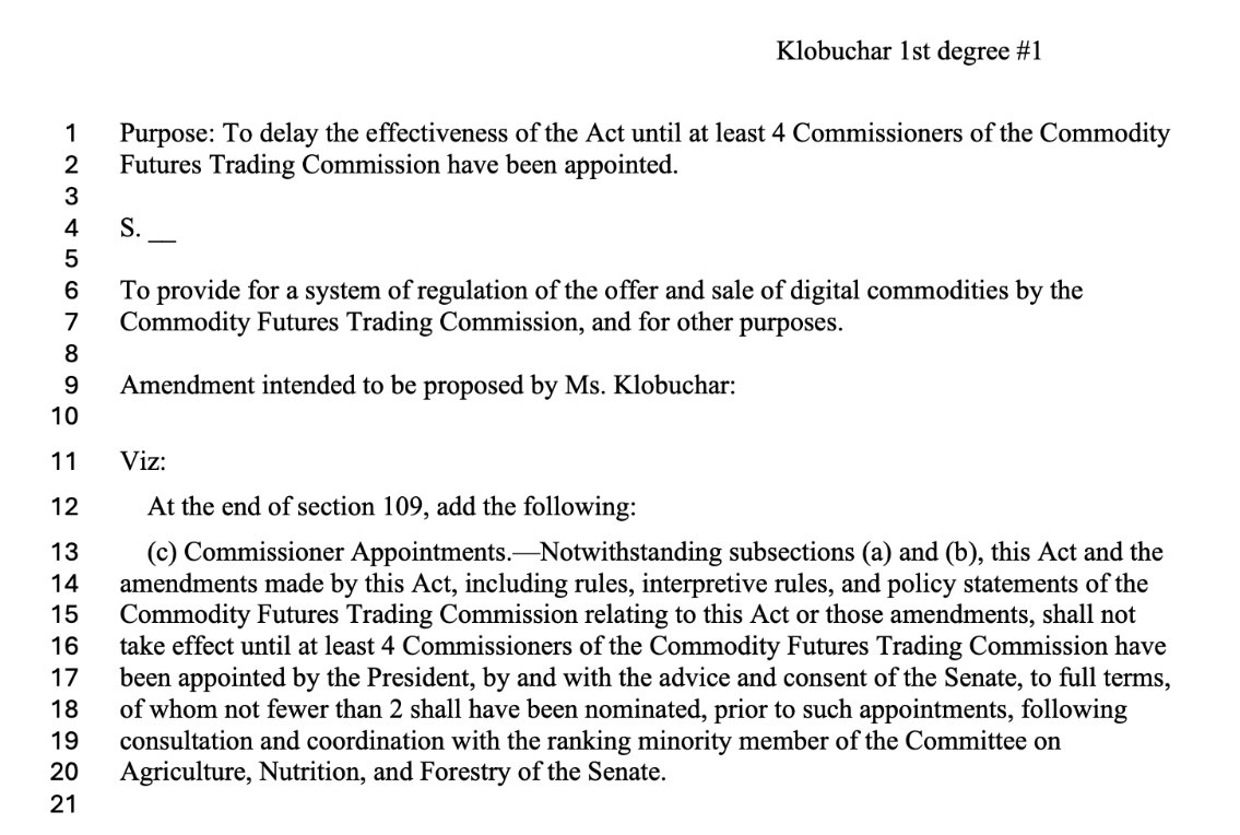 Senator Amy Klobuchar’s proposed amendment on CFTC. Source: Senate Agriculture Committee