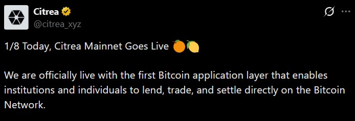Citrea launched its Bitcoin zero-knowledge rollup mainnet with BTC-backed lending, structured products and a natively issued US dollar stablecoin, ctUSD, positioning Bitcoin as base collateral for DeFi and payments.