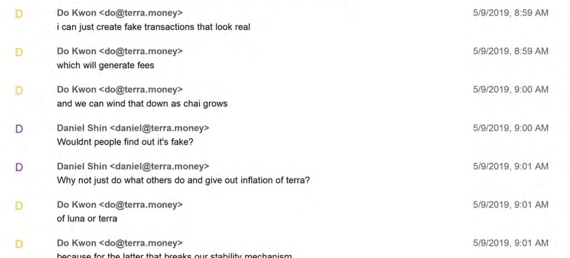 His legal team claims that Kwon and Shin spoke about the possibility of staking LUNA tokens with validators rather than creating counterfeit Chai transactions: