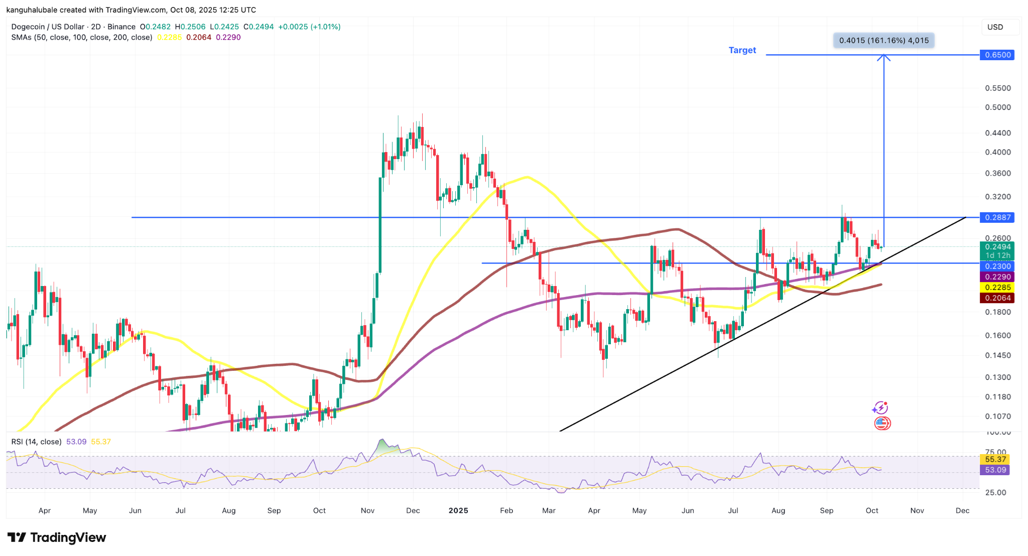 DOGE Price Eyes 160% Rally to $0.65 as RSI Sends Bullish Signal