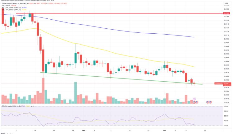 The problem is, however, that DOGE’s support level (green) continues to decline, and there’s every chance it could be broken yet again, with a move below $0.580 potentially opening the floodgates to further losses.