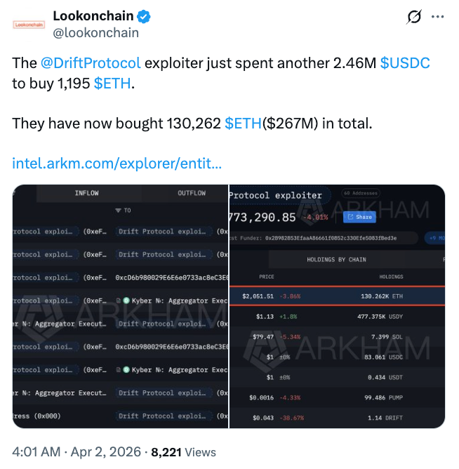 The attack began on Wednesday, with the theft involving multiple assets, including Circle’s USDC (USDC) and various altcoins. Onchain data later showed that the exploiter swapped the majority of assets into USDC, with the funds later bridged to Ethereum.